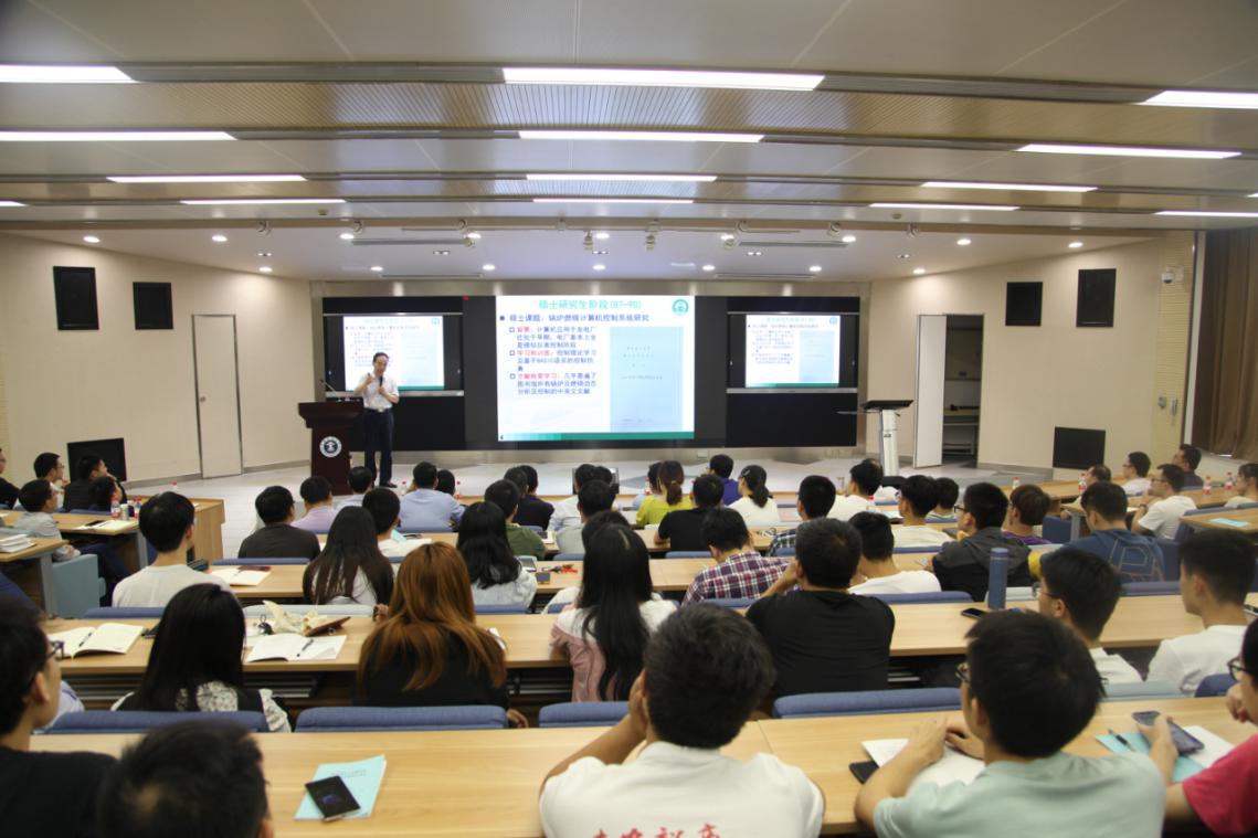 电力学院党委书记伍小杰致欢迎词,对周怀春教授的到来表示热烈的欢迎与衷心的感谢。讲坛正式开始,周怀春教授为与会师生做题为“拥抱智能发电时代”的讲座。讲座从测控在能动专业中的演变、机械与电气专业中的测控、现阶段智能发电实现路径等三个方面,系统地向与会师生讲解了智能发电时代的研究路径与研究进展。在讲座最后的提问环节,周怀春教授与参加讲座的师生进行了充分的交流,并勉励学生志存高远,潜心钻研,努力在学术领域做出一番杰出成就。