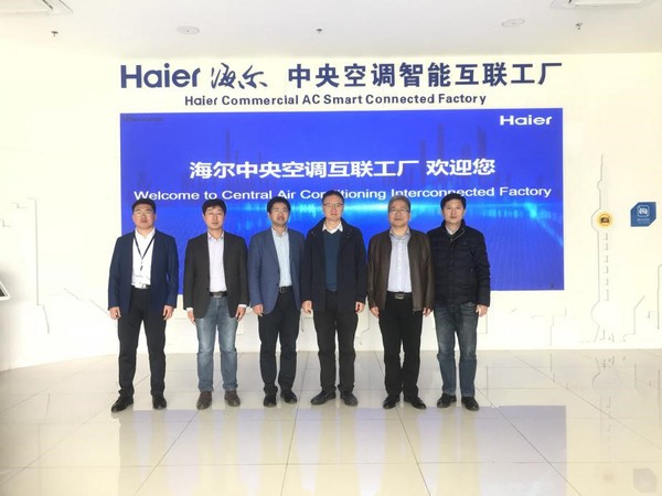 柴纪强总经理对海尔智慧能源在燃气三联供、压缩空气托管服务、智慧储能、空气源热泵、污泥减量化、智慧照明等技术进行了介绍;伍小杰书记对电气动力工程学院科研、教学等方面的成果进行了介绍,并表示海尔能源动力有限公司拥有科研优势、产业优势和服务优势,双方在校企合作上有很好的合作空间和互补优势。随后伍书记一行参观了海尔磁悬浮冷水机组生产线、海尔智慧能源总控平台,全面了解将来学生的实习环境和实践框架内容,并提出了建设性意见。