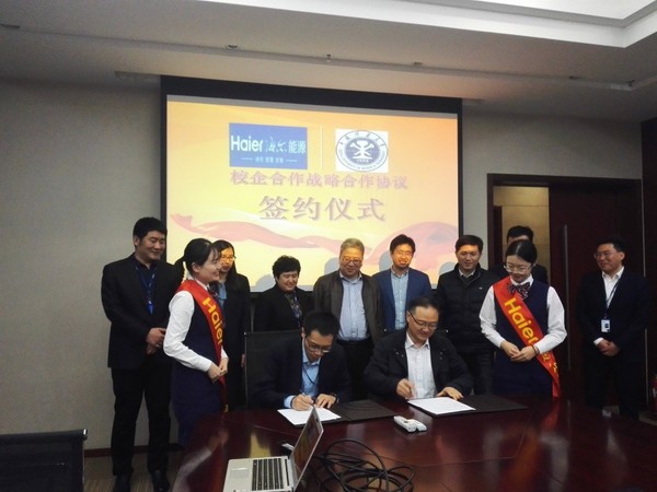 电气与动力工程学院与海尔能源动力有限公司校企共建签约与实习基地揭牌仪式在海尔集团董事局会议室举行。学院党委书记伍小杰与海尔能源动力有限公司总经理柴纪强签署共建协议,教学副院长徐瑞东与智慧物联生态圈HSE&6S平台主耿庆红为“厕拍
