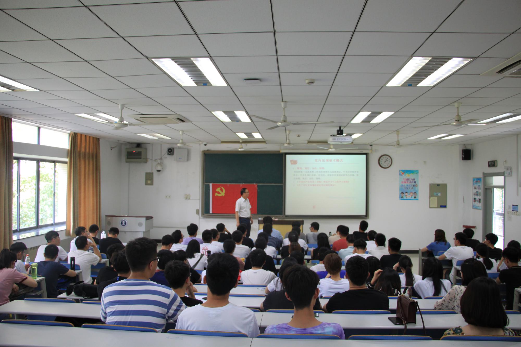 宣誓结束后,党课正式开始。本次党课内容共分为四部分:首先,伍书记带领同学们重温了党的纲领、党员的职责与义务等基本知识,表示希望同学们在毕业之后的学习、工作和生活中能够不忘初心,坚持发挥自己作为党员的先进作用。随后,伍书记从国际形势着手,谈到党和国家对同学们的期待与要求,又深入浅出地分析了社会大形势对学科专业与就业形势的影响、带来的机遇与挑战,设身处地地为同学们的未来发展着想,提出了很多切实可行的建议。接着,伍书记从中国梦谈起,讲到了同学们的个人梦想、学校的梦想、用人单位与社会的梦想,鼓励同学们把自己的梦想与努力升学、积极就业等实际行动结合起来,实现个人与社会的同步发展。最后,伍书记表示,感谢同学们为母校、为学院所做的一切,母校也会在今后尽可能地给予同学们支持,做大家最坚实的后盾。