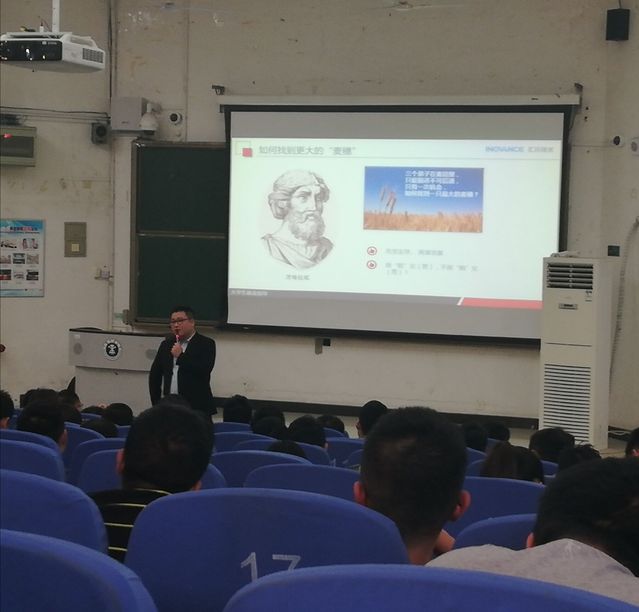 下午四点十分,电气与动力工程学院杰出校友励志成才分享会正式开始。首先,杰出校友郭立鹏向同学们介绍了讲座的意义和目的,并表示希望同学们在此次的讲座中有所收获,对自己的职业生涯有进一步的规划。接着,郭立鹏讲述了自己的职业经历及选择就业公司的技巧,并从问法、学法、做法三个方面介绍了汇川公司的发展、成就、工作环境和待遇、团队及战略等,为同学们讲解了公司对人才的需求,建议同学们注重培养自己的学习能力,把握校园里的学习机会,适当给自己加压,为未来的发展努力奋斗。
