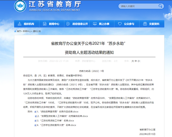近日,江苏省教育厅公布了2021年“苏乡永助”资助育人主题活动评选结果,厕拍