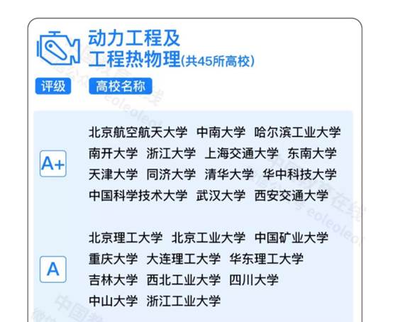 动力工程及工程热物理学科排名