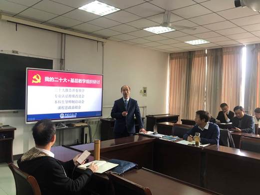 本次会议为“我与二十大+基层教学组织研讨会”系列活动之一,该系列活动旨在将党支部建设与基层教学组织建设相融合,将党建工作与业务工作相融合,将增强师德师风和提升教学能力相融合,从而为新时代培养造就大批德才兼备的高素质人才。