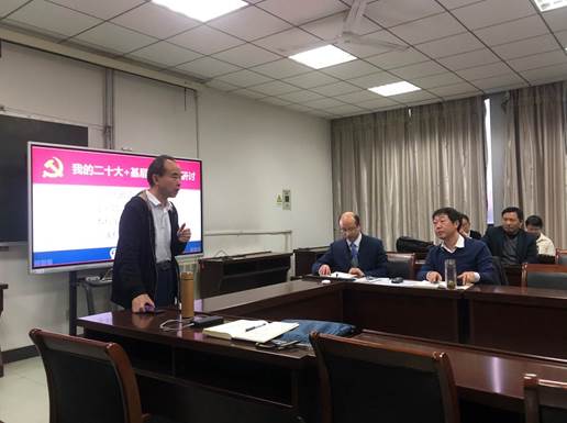 本次会议共分四个部分,第一部分由张保生老师主持,进行二十大报告开卷领学,教师支部委员申双林、王焕光、余波、张保生先后领学了“过去五年的工作和新时代十年的伟大变革”、“开辟马克思主义中国化时代化新境界”、“新时代新征程中国共产党的使命任务”、“加快构建新发展格局,着力推动高质量发展”四个部分,与会教师围绕领学内容展开讨论,认为二十大报告为下一步高等教育教学改革指明了方向,应通过深入学习,加强理解,并切实落实到日常教学及科研工作中。