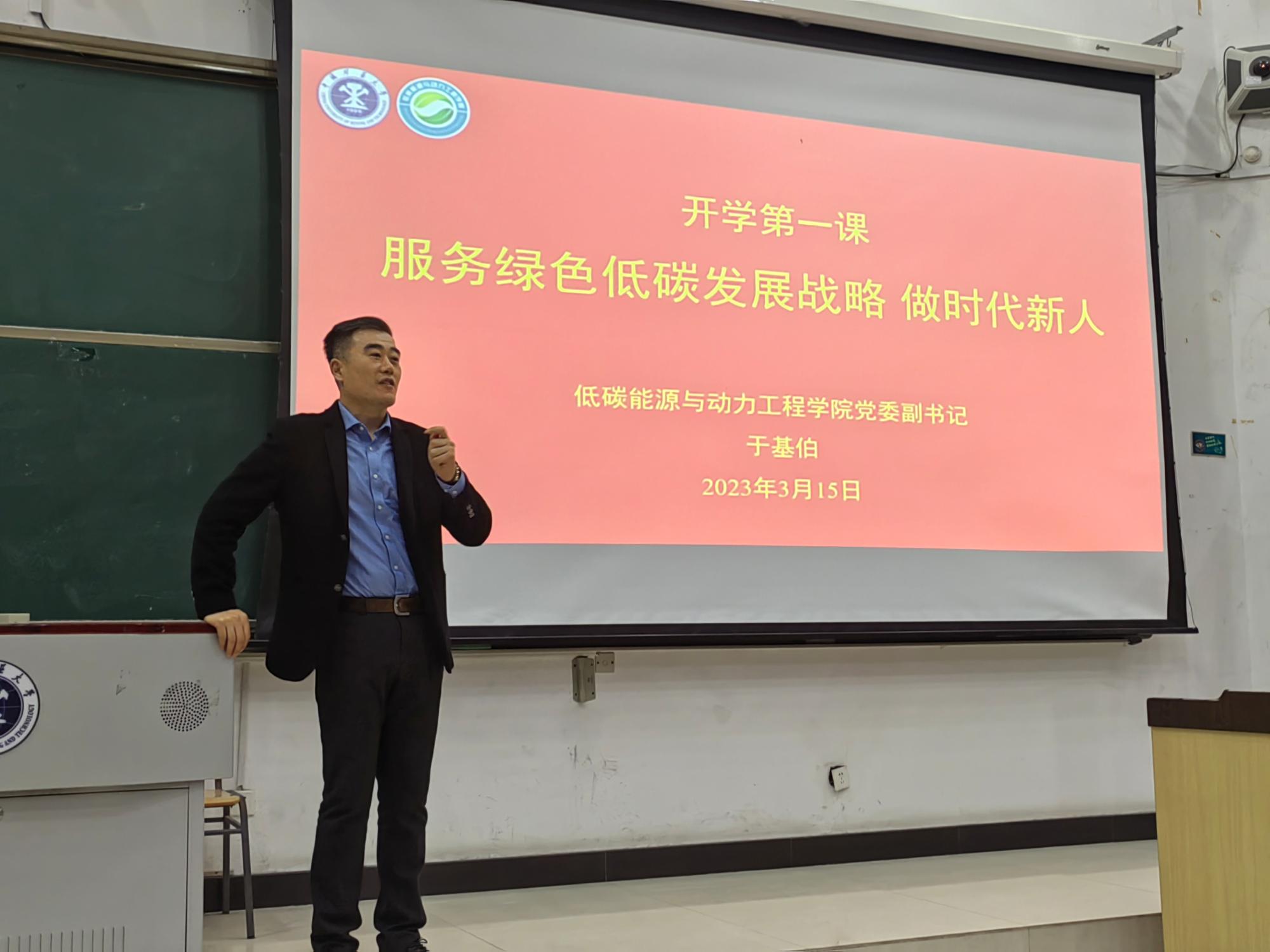 于基伯副书记从做时代新人、提升综合素质、开放成长成才三方面展开报告。他指出各位同学作为新时代的青年人,应跟随党的领导,主动学习党的二十大报告和理论知识,自觉“立大志、明大德、成大才、担大任”,利用自己的专业理论知识服务国家绿色低碳发展战略,成为德才兼备的合格时代新人。随后于基伯副书记强调同学们应从自信、积极的态度、表达、沟通、团队建设五个方面提升个人综合能力,并利用好学校的各类课程和其他资源,做到多学习多思考,全面成长,实现自我价值。