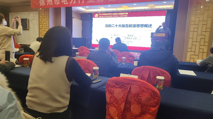 能动党支部书记张保生受徐州市委党校、上海能源(大屯)公司党校、徐州市电力行业协会邀请,分别为徐州卷烟厂、上海大屯能源公司新能源板块、徐州市电力行业协会宣讲党的二十大报告能源思想。