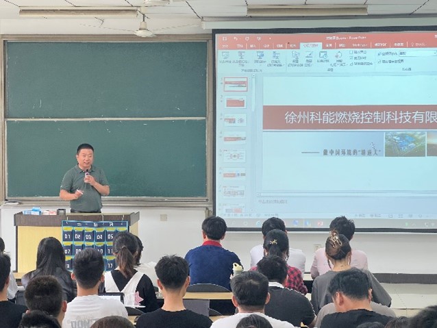 教师邀请徐州科能燃烧控制科技有限公司总经理马鹏远参与能源动力工程三年级学生专业主干课《燃烧理论》的课堂教学活动。