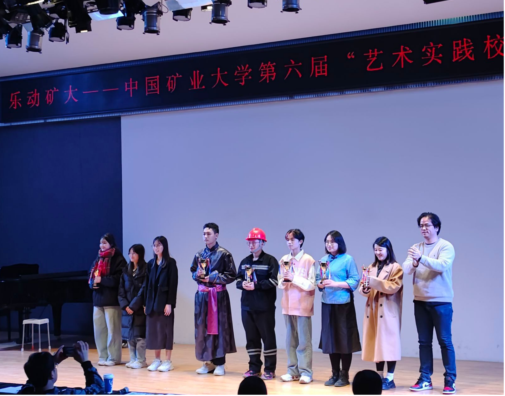 表演节目名称为《敕勒川》,本节目成员共五人,2023级赵峻民同学担任主唱,2023级王召璇与杨皓舒同学分别表演钢琴、马头琴,2022级郑煜桐和徐颖同学表演古筝、伴舞。表演过程中,同学们通过演奏的不同乐器,伴着人声演唱,让人好似驰骋于苍茫壮阔的草原之上,令人流连忘返,经过激烈角逐,厕拍