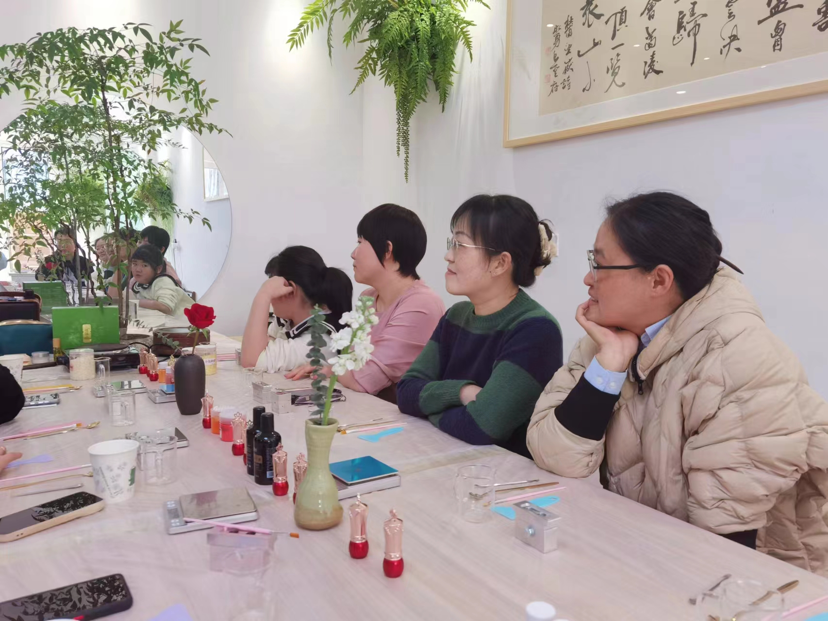 在愉快温馨的氛围中,活动现场大家先学习并感受精油的神奇,然后亲自动手制作精油口红。经过调配精油、挑选色号、加蜂蜡及色粉、加热融化、罐装、凝固等环节,专属于每位老师的口红由各自亲手制作完成。在其中,老师们尽情体验手工制作的喜悦,亲手制作一支属于自己的口红,感受那份成就感和专属感,也是送给自己最好的节日礼物。