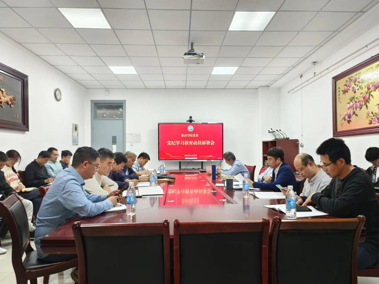 张磊在会上传达了学校党纪学习教育部署会相关精神和要求,结合学院制定的《低碳能源与动力工程学院深入开展党纪学习教育的实施方案》进行解读和部署,全面启动学院党纪学习教育。
