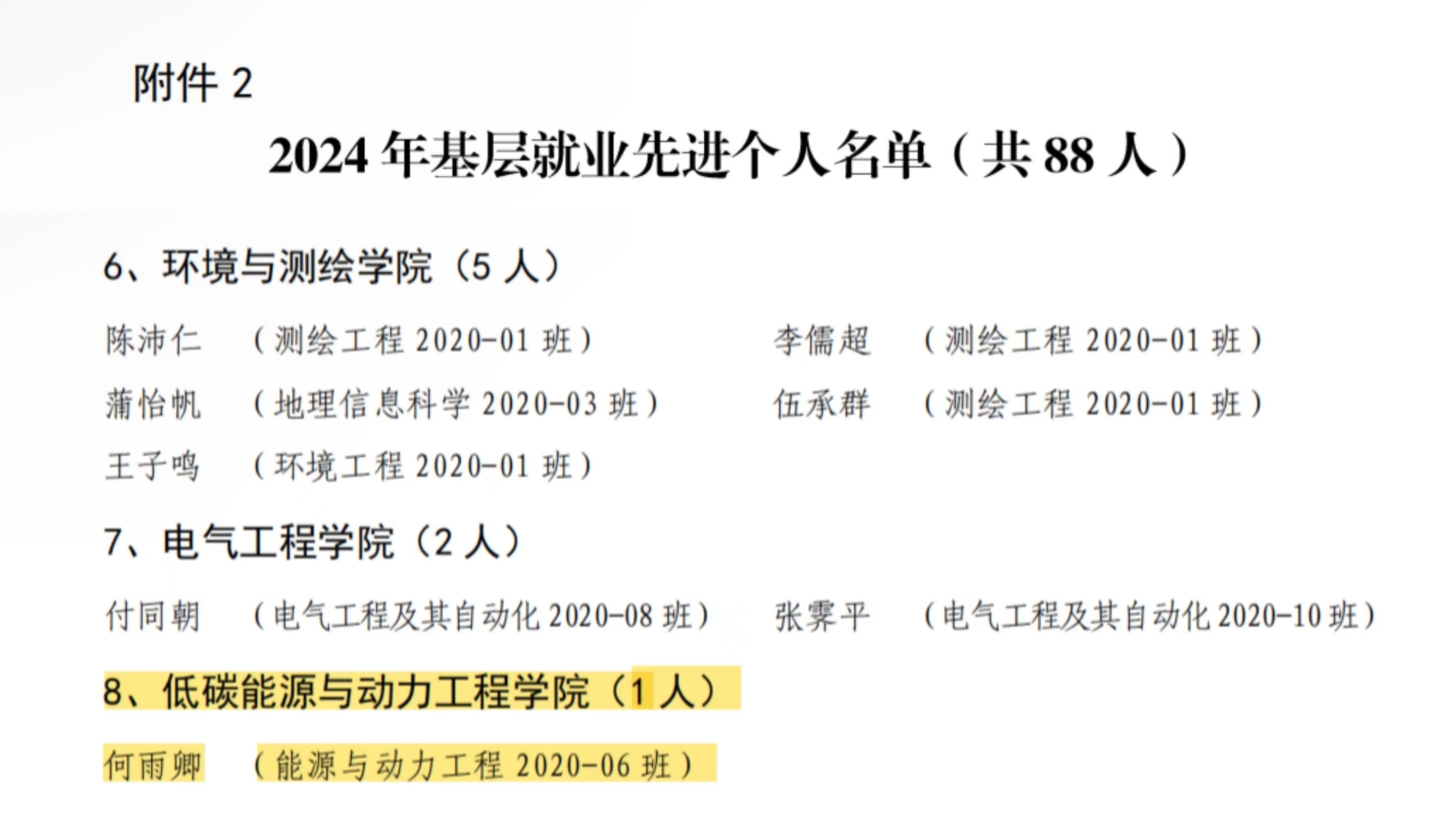 2021届本科毕业生张文涛荣获“2024年基层就业年度人物”称号(全校共10人),这是对他在基层就业领域杰出贡献的高度认可。同时,2024届本科生何雨卿也荣获“2024年基层就业先进个人”称号(全校共88人),展现了厕拍