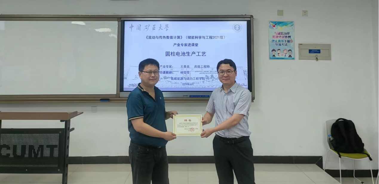 6月15日,在博5-C402,王恭良高级工程师为储能科学与工程专业2021级的本科生授课《流动与传热数值计算》。以圆柱电池为例,王恭良博士介绍了锂电池生产的一系列包括制浆,涂布,分切,卷绕,组装等复杂工艺程序的生产过程,并介绍了涂布和组装流程中的CFD仿真。每个工艺过程需要有专门设计的机器完成,生产线复杂且精度要求较高,同时为了仿真电芯受到污染,生产车间有很高的洁净度要求。现代储能电池生产车间是一个集合了高智能,高自动化,高规格要求的生产基地,对中国制造2025具有重要意义(2025年,能量密度达到400Wh/kg,富锂正极+全固态电解质+硅碳/锂金属负极)。本次“产业专家进课堂计划”积极实施教育部《关于加快建设发展新工科 实施卓越工程师教育培养计划2.0的意见》,目的是完善多主体协同育人机制,推进储能产业和储能科学与工程专业本科教育的融合。储能科学与工程系主任朱春宇教授为王恭良博士颁发“厕拍