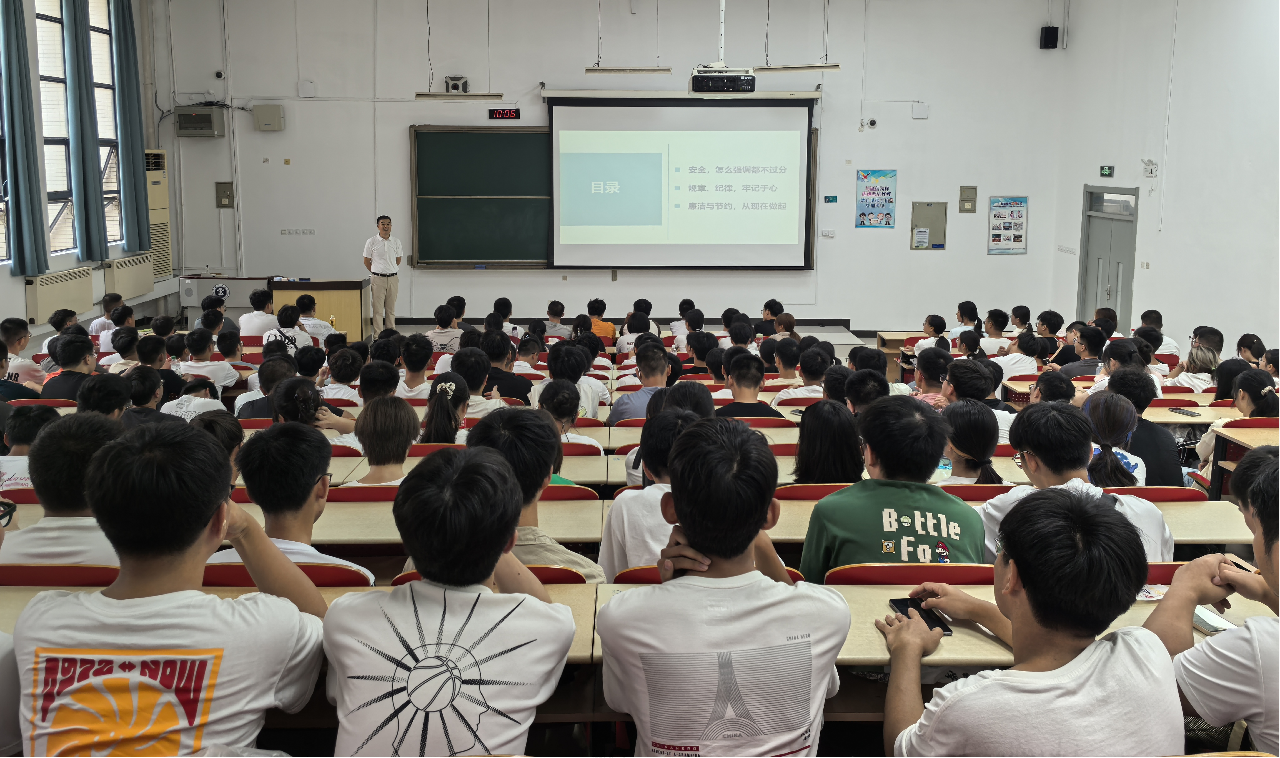 于博二C201召开2024级新生安全教育大会暨军训动员大会,由学院党委副书记于基伯和2024级辅导员王文礼主讲,全体2024级本科新同学参加。