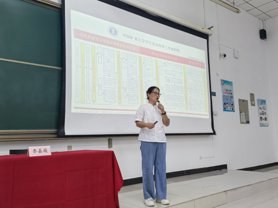 李嘉薇老师向大家详细解释入党条件、入党程序和入党申请书格式等相关问题。她对新生同学们寄予殷切期盼:作为新时代大学生,同学们应以党员的严格标准要求自己,在工作学习上起到模范带头作用,争取早日入党,在党的引领下继续绽放光芒。