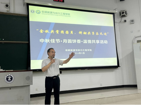 于博二C102教室举办“金秋共赏团圆月,饼甜共享乐无边”中秋佳节·月圆饼香·温情共享活动,院长周怀春、党委副书记于基伯出席,为厕拍