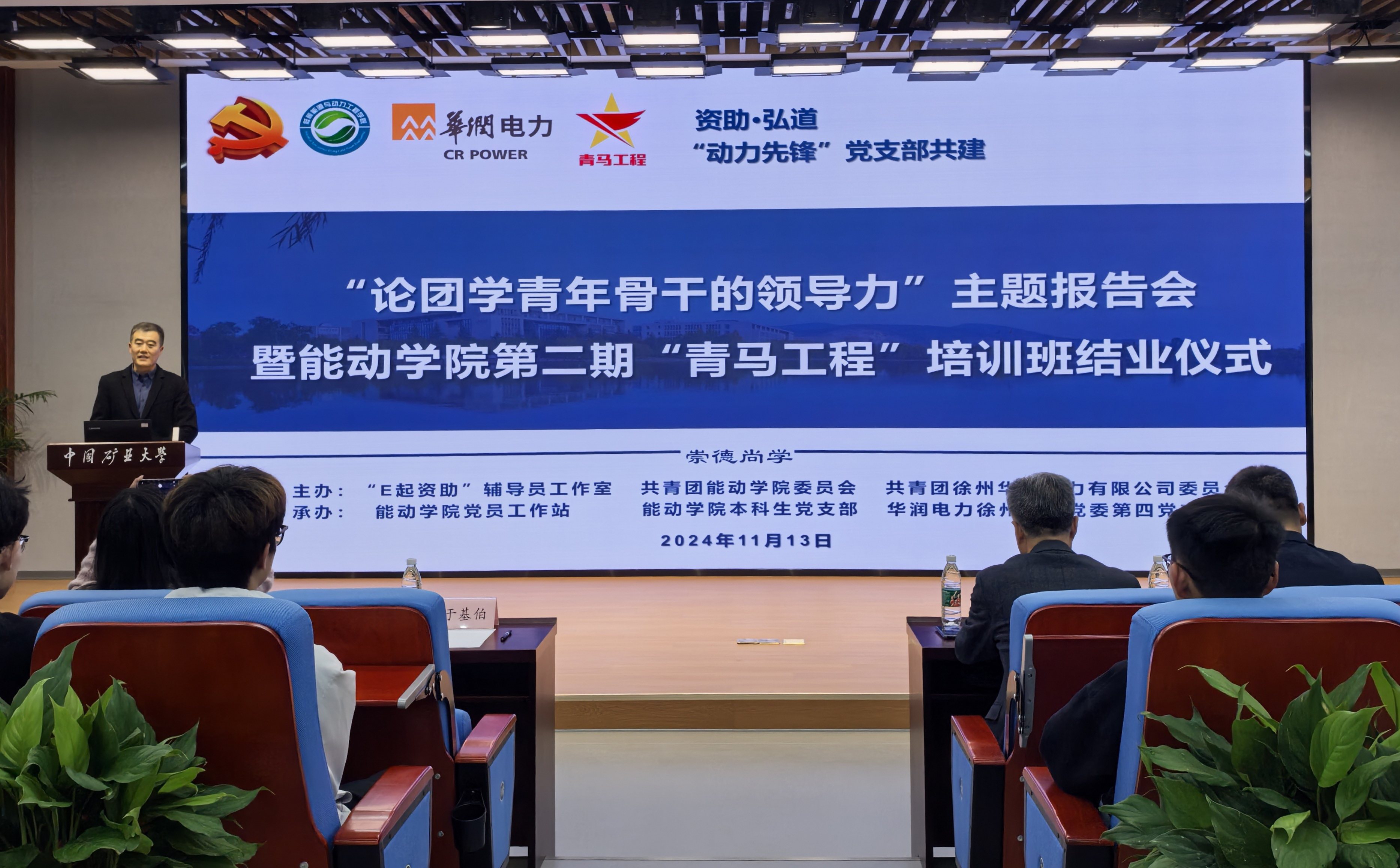 此次“论团学青年骨干的领导力”主题报告会暨能动学院第二期“青马工程”培训班结业仪式的举办,是学院党委与华润电力徐州公司党委“动力先锋”党建品牌活动的计划内容,两个单位党建带团建,彰显了学院对青年团学骨干和“青马工程”的高度重视。“青年兴则国家兴,青年强则国家强。”希望能动学子们都能树立远大理想、坚定青春信念,不负青春、挺膺担当,在专业学习和学生工作中不断提升个人综合素质,争做有理想、敢担当、能吃苦、肯奋斗的新时代好青年。