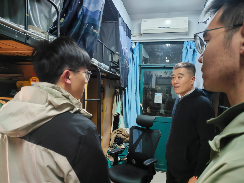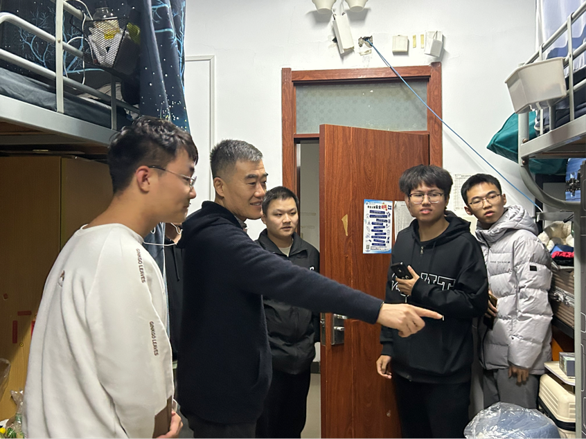 走访检查期间,老师们认真查看了学生宿舍的卫生情况,检查是否存在安全隐患,与同学们亲切交流并提醒大家在遇到问题时及时与辅导员老师联系。于基伯副书记强调,寝室是同学们大学四年的家,宿舍安全和文明环境是重中之重,希望同学们能够继续保持宿舍整洁,注意个人卫生,共同营造一个良好的学习生活氛围。