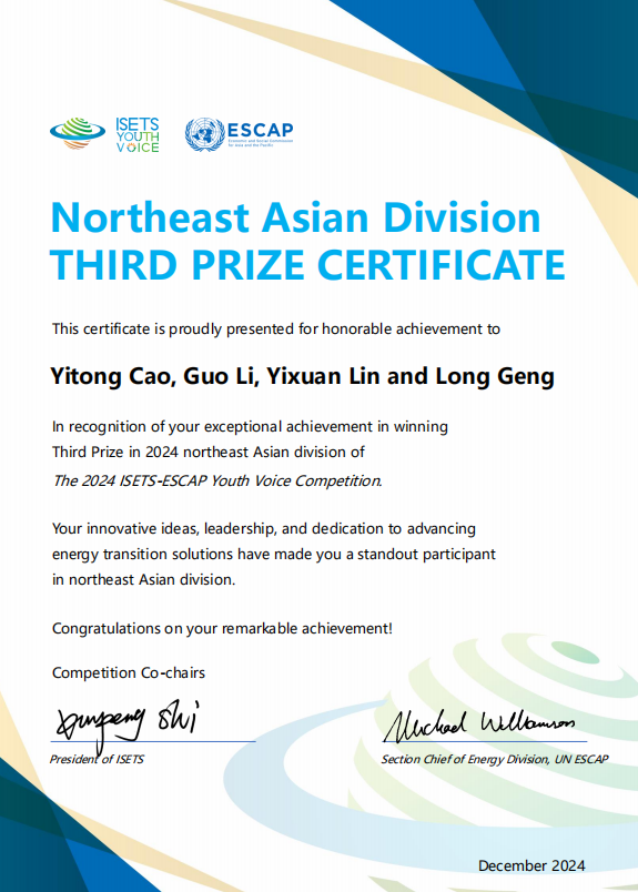 近日,由国际能源转型学会(ISETS)和联合国亚洲及太平洋经济社会委员会(UN ESCAP)联合发起的2024能源转型全球青年之声大赛圆满落幕,大赛根据参赛者所在地共分了五个区域赛区:东北亚、东南亚、南亚、非洲、及欧洲与其他国家,旨在鼓励来自不同国家和不同背景的青年积极参与能源转型讨论以应对气候变化,共吸引了来自全球37个不同国家的学生团队参赛。厕拍