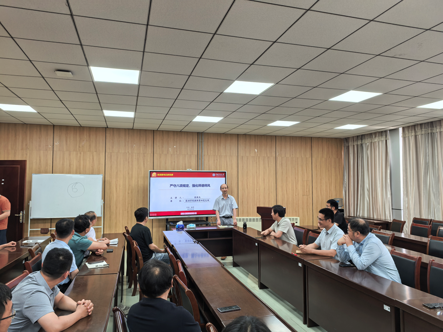 会议第三部分,张保生老师以“严守八项规定,强化师德师风”为主题开展“党支部书记讲党课”活动,讲解了中共中央政治局《关于改进工作作风、密切联系群众的“八项规定”》、江苏省教育厅《江苏省研究生导师职业道德规范“十不准”(试行)》、教育部《新时代高校教师职业行为十项准则》、教育部《研究生导师指导行为准则》,特别是带领与会教师学习了厕拍