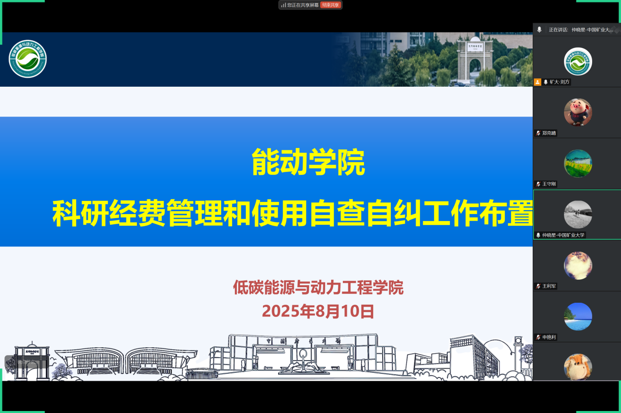 8月10日上午,能动学院以腾讯会议形式召开科研经费管理和使用自查自纠工作布置会。学院领导及全体教师参会,会议由科研副院长刘方主持。