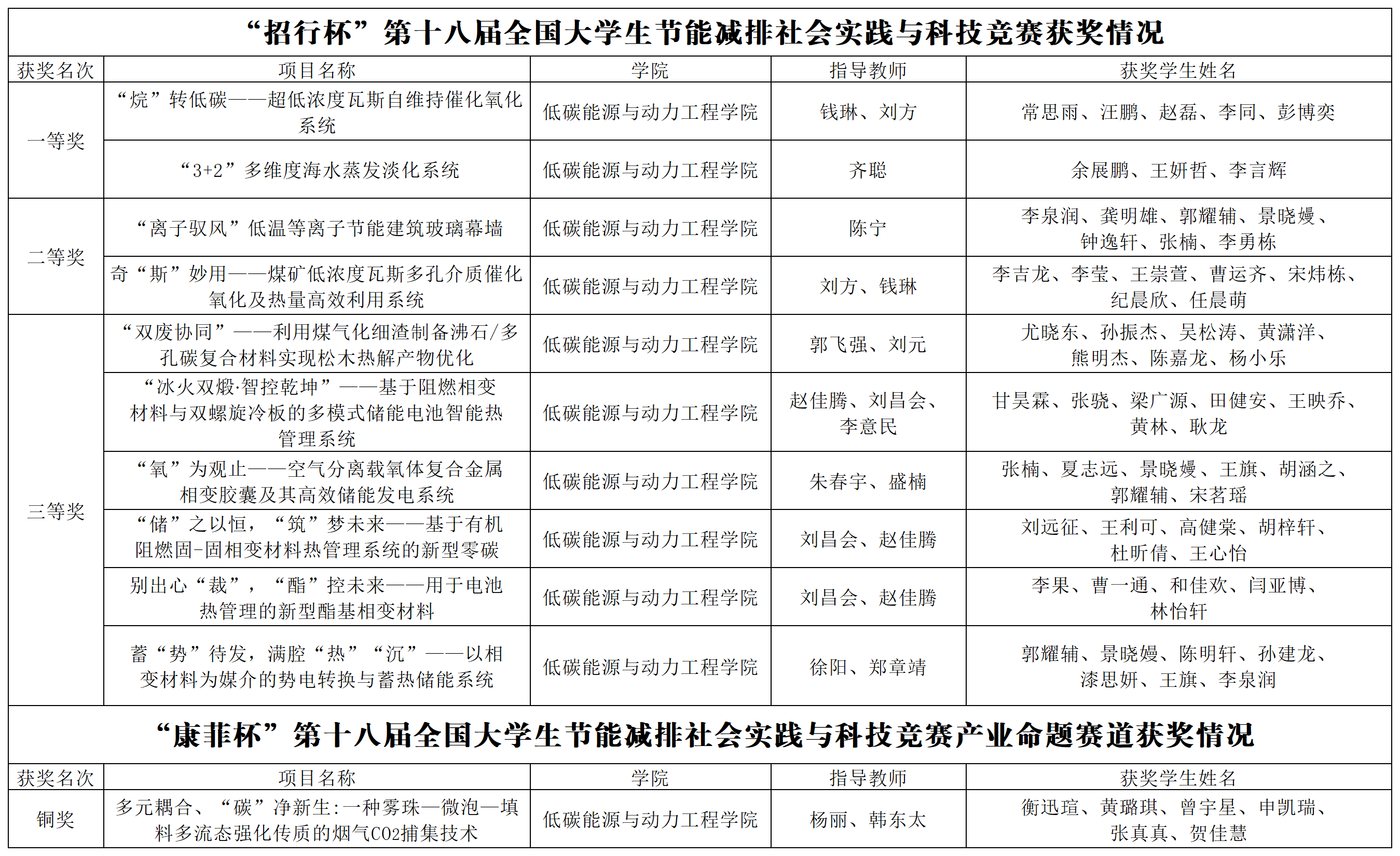 由学院教授陈宁指导,李泉润、龚明雄、郭耀辅、景晓嫚、钟逸轩、张楠、李勇栋同学共同研究的项目“‘离子驭风’低温等离子节能建筑玻璃幕墙”项目,以及由教授刘方和讲师钱琳指导,李吉龙、李莹、王崇萱、曹运齐、纪晨欣、宋炜栋、任晨萌同学共同研究的作品“奇‘斯’妙用—煤矿低浓度瓦斯多孔介质催化氧化及热量高效利用系统”获得二等奖。“离子驭风”项目针对普通幕墙的能耗大的痛点,运用低温等离子技术、多电极轮替负载控制策略、与玻璃一体化透明镀膜电极与传统玻璃幕墙结构相融合在不影响传统玻璃幕墙美观和功能的前提下,实现高保温性能和低制造成本,为实现绿色建材产业高质量发展的新跨越贡献重要力量。“奇‘斯’妙用”项目作品通过多孔介质催化氧化+瓦斯浓度智能调控+热量高效利用,解决了我国煤矿低浓度瓦斯烧不着、波动大、用不好的难题,实现了废弃能源的回收并显著降低碳排放,助力煤矿瓦斯减排及利用,推动“双碳”目标实现。
