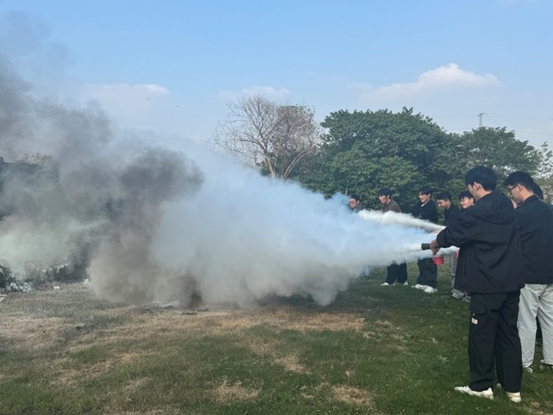 灭火演练时,学院实验室安全员卞丽丽老师亲自示范操作。同学们十人一组进行消防灭火演练。大家不仅熟悉了灭火器的基本使用方法,而且也切实提升了自身应对初期火灾的实操能力与应急处置水平。